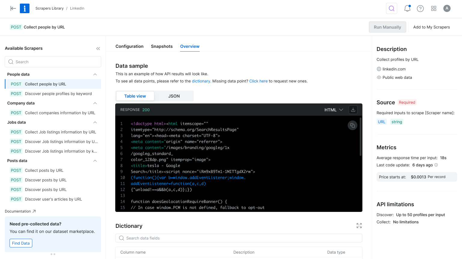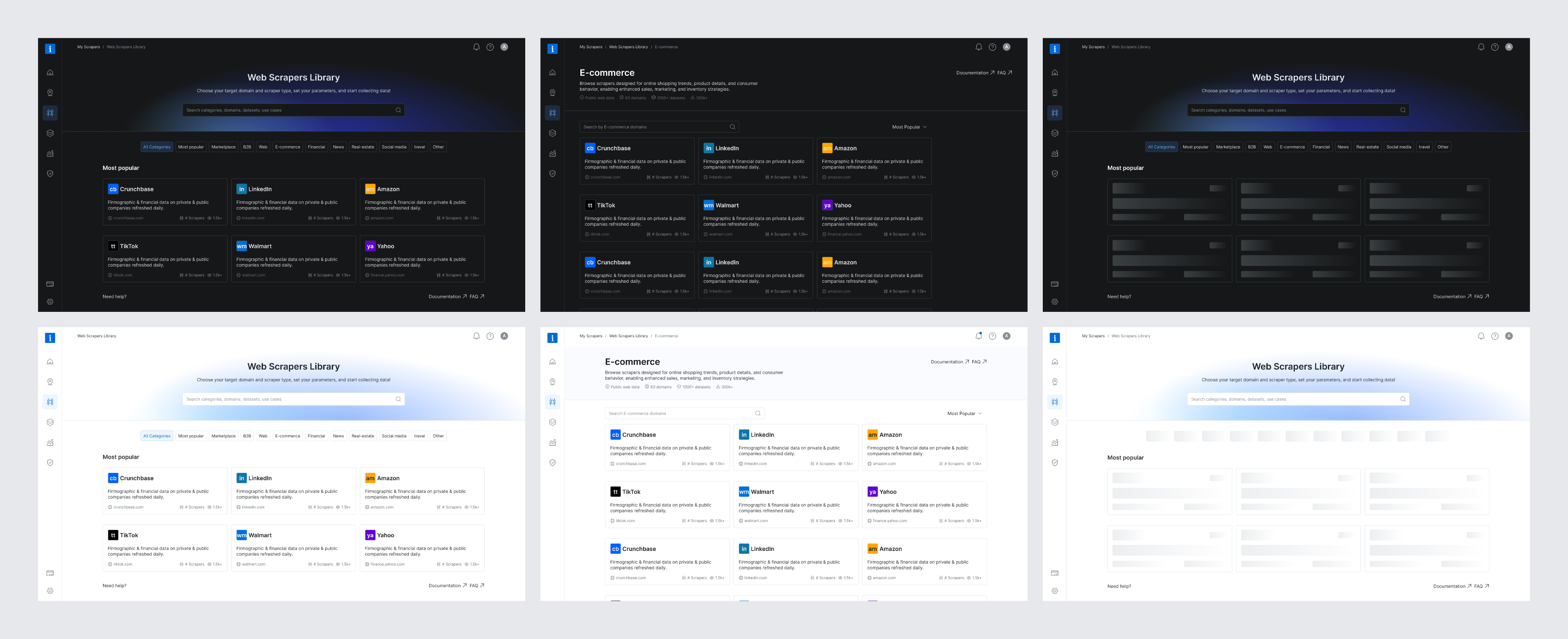 The UI presented both Scrapers and Datasets in a unified layout, using consistent visual elements and category tags to distinguish them clearly. This was a pragmatic solution that improved user clarity without overhauling the entire marketplace.