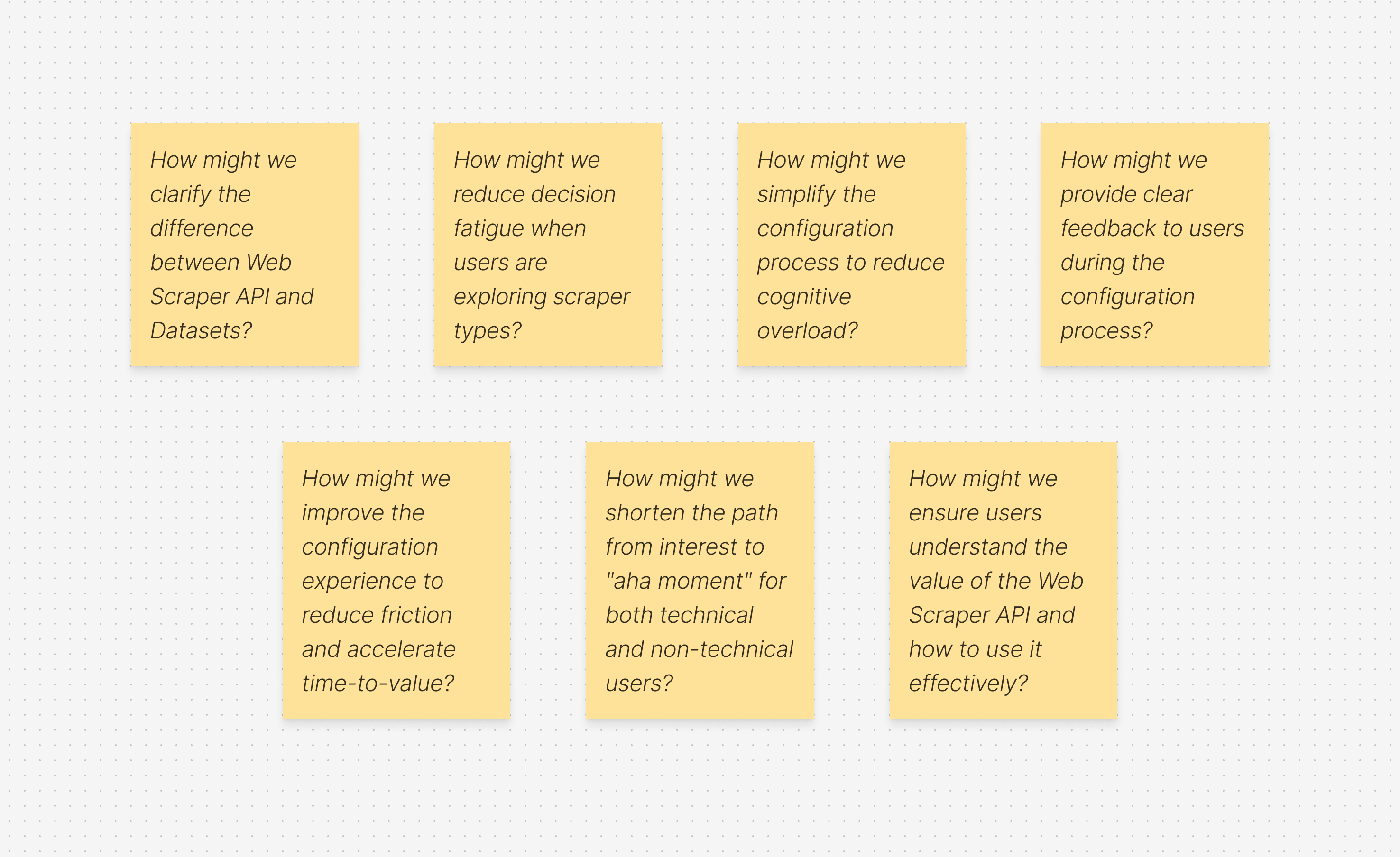 Defining “How Might We” (HMW) questions helped me focus on solving the right problems before jumping into design exploration. It was a crucial step in narrowing the scope and prioritizing what would deliver the most value.